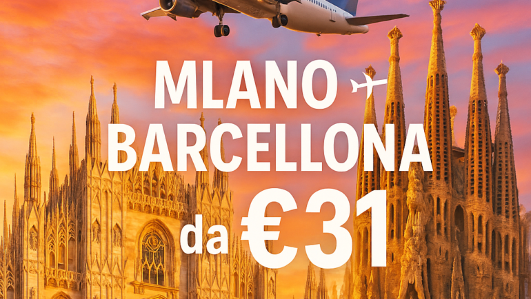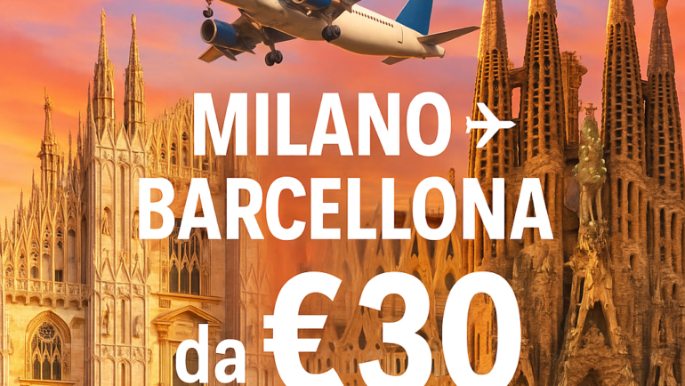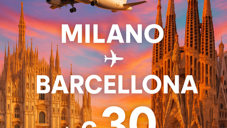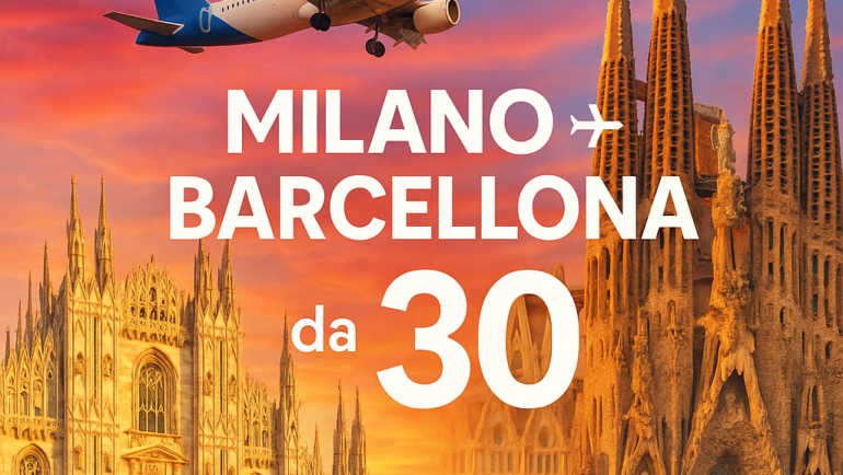 Volo economico da MIL a BCN a soli €31: andata e ritorno dal 02-02-2026 al 09-02-2026 Se stai cercando un’occasione imperdibile per scoprire Barcellona, città ricca di fascino, arte e…